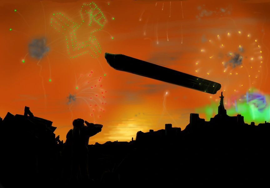 The last statue is of Fal; a statue that is constantly in motion, providing the illusion that it is a statue constructing itself. Screens are below it displaying constantly changing scientific formulae.